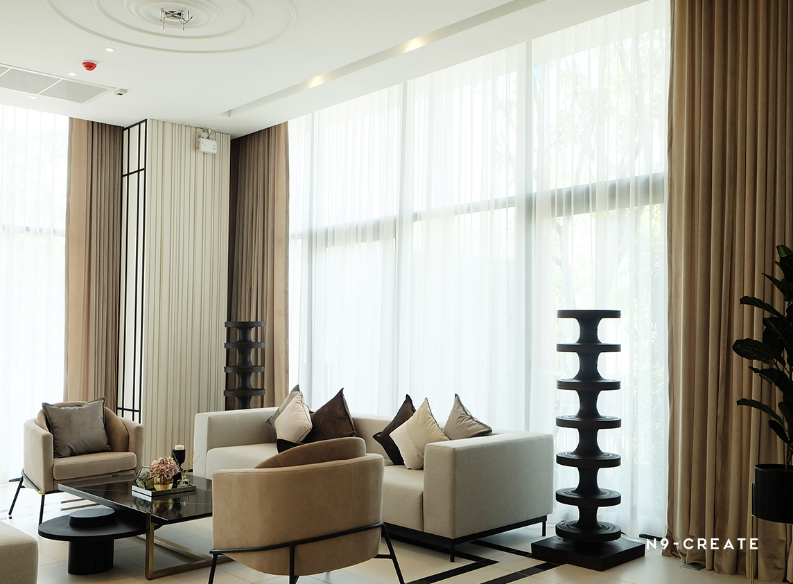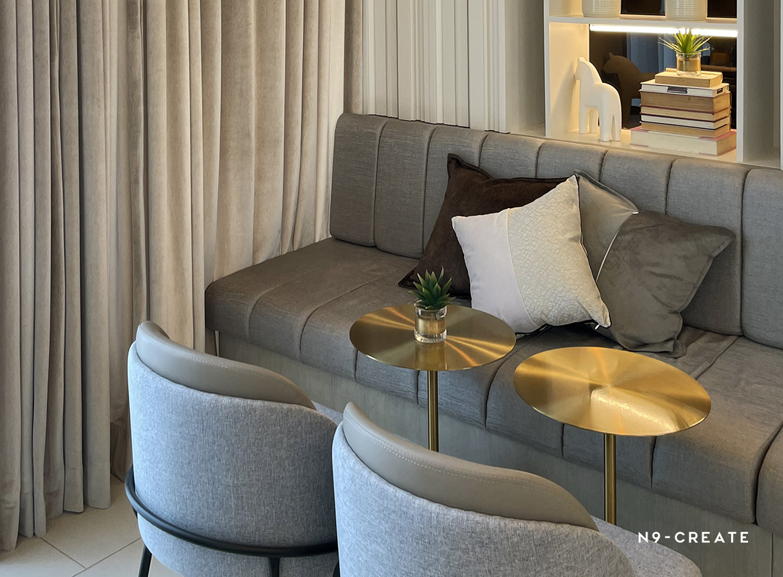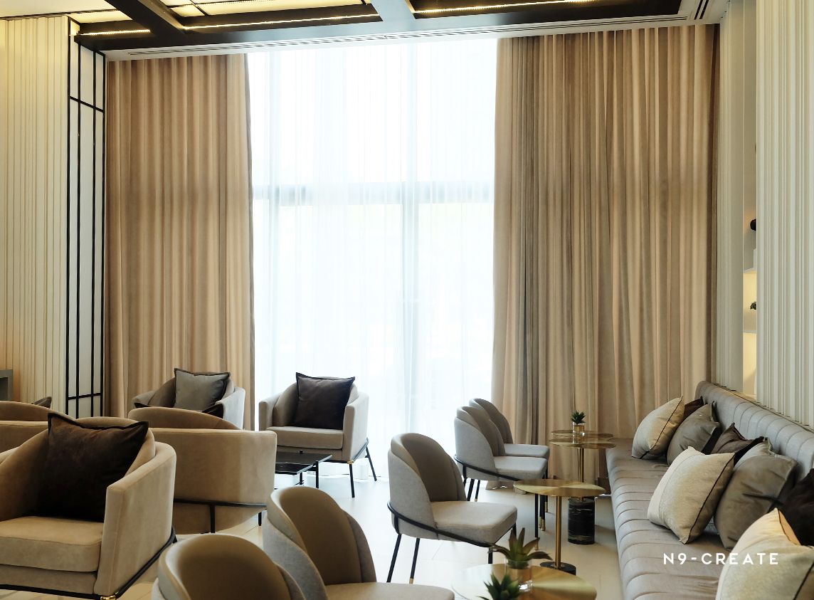 A Touch of luxury and warmth to space withย #velvetย fabrics.Location : Aspen Condo Lasalle [Lobby Area]